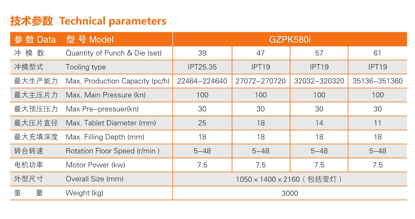 ·數(shù)字顯示上海泰博雷特GZPK580i系列中速旋轉(zhuǎn)壓片機(jī)主壓力,片劑厚度,充填深度及轉(zhuǎn)速,產(chǎn)量。